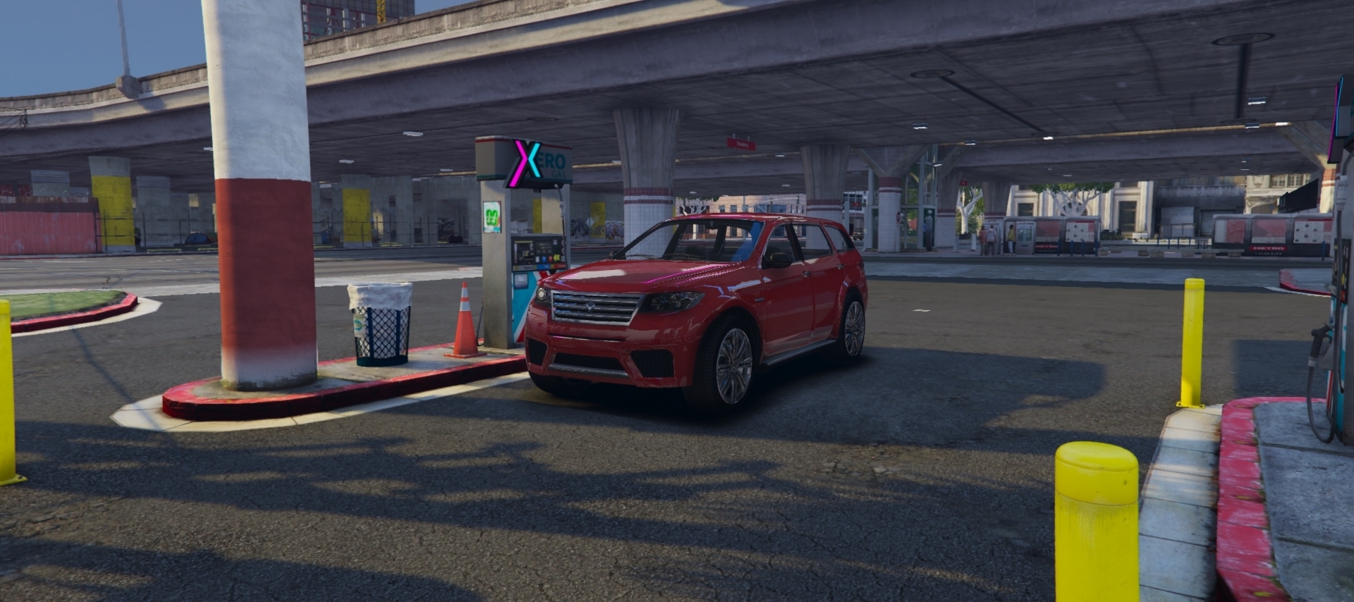 All gas vehicles can refuel at any gas station located in San Andreas. There are some electric charging stations at select gas stations as well.